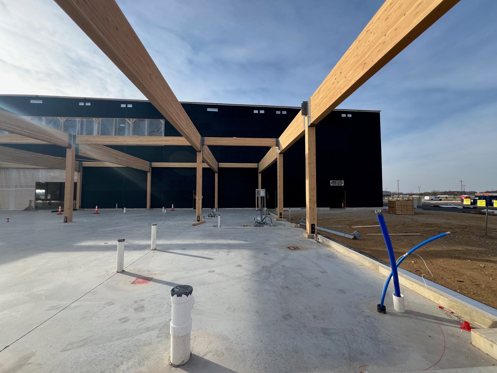 PanelShield SA protected the mass timber from moisture damage during transportation and construction, ensuring the panels arrived dry before being integrated into the structure. Its durability allows it to withstand aggressive handling, fast installation, and tough on-site conditions, while simultaneously drying the mass timber substrate.
